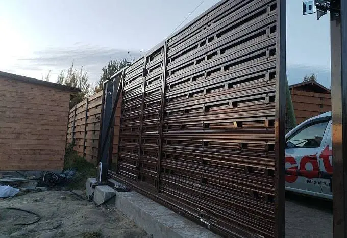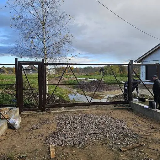 По совету знакомых заказали откатные ворота с калиткой без заполнения, сами займёмся отделкой позже. Всё установили ровно и аккуратно, ворота двигаются мягко, калитка работает отлично. Конструкция прочная и долговечная, результат полностью устраивает.