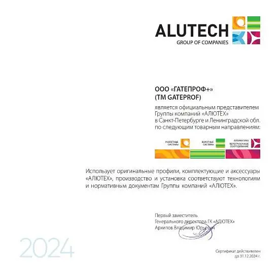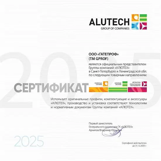Уже много лет заказываем продукцию Alutech через GProf. В этот раз понадобились ворота и герметизаторы проёма для крупного объекта. Качество стабильно высокое. Доверяем и рекомендуем