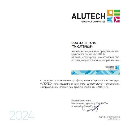 Уже не первый раз работаем с GProf – надёжный партнёр и проверенный представитель Alutech. Всё прошло чётко, как всегда. Качество самой продукции Alutech вопросов не вызывает. Ворота надёжные, работают стабильно, есть официальная гарантия. Сроки соблюдены, монтаж профессиональный...