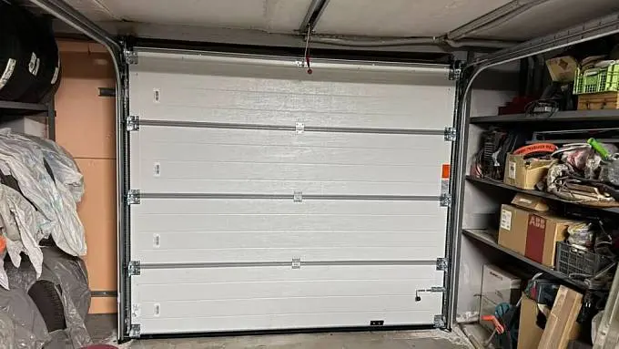 S-гофр цвета RAL9016 (белый), с автоматическим управлением, торсионные пружины, с калиткой